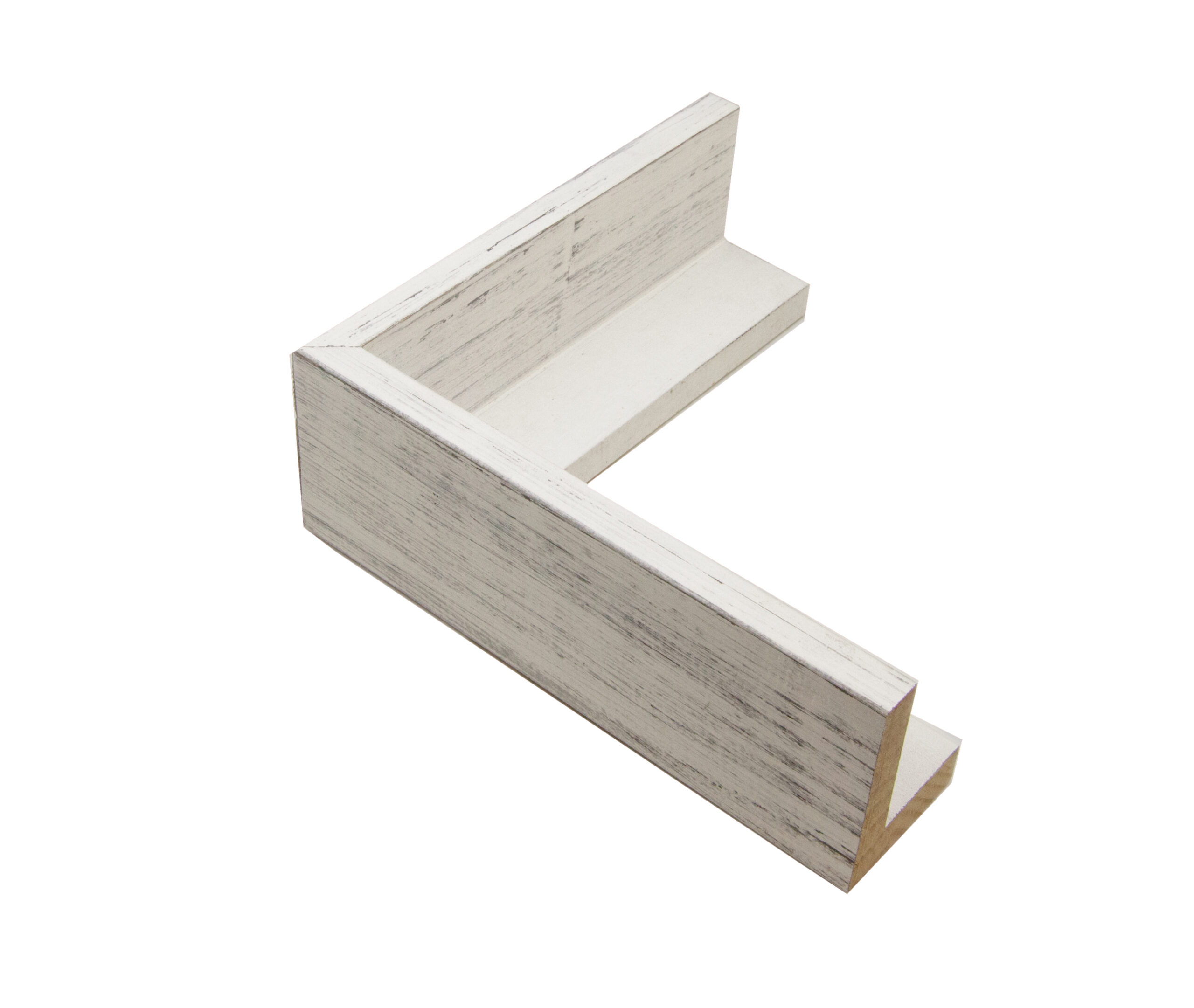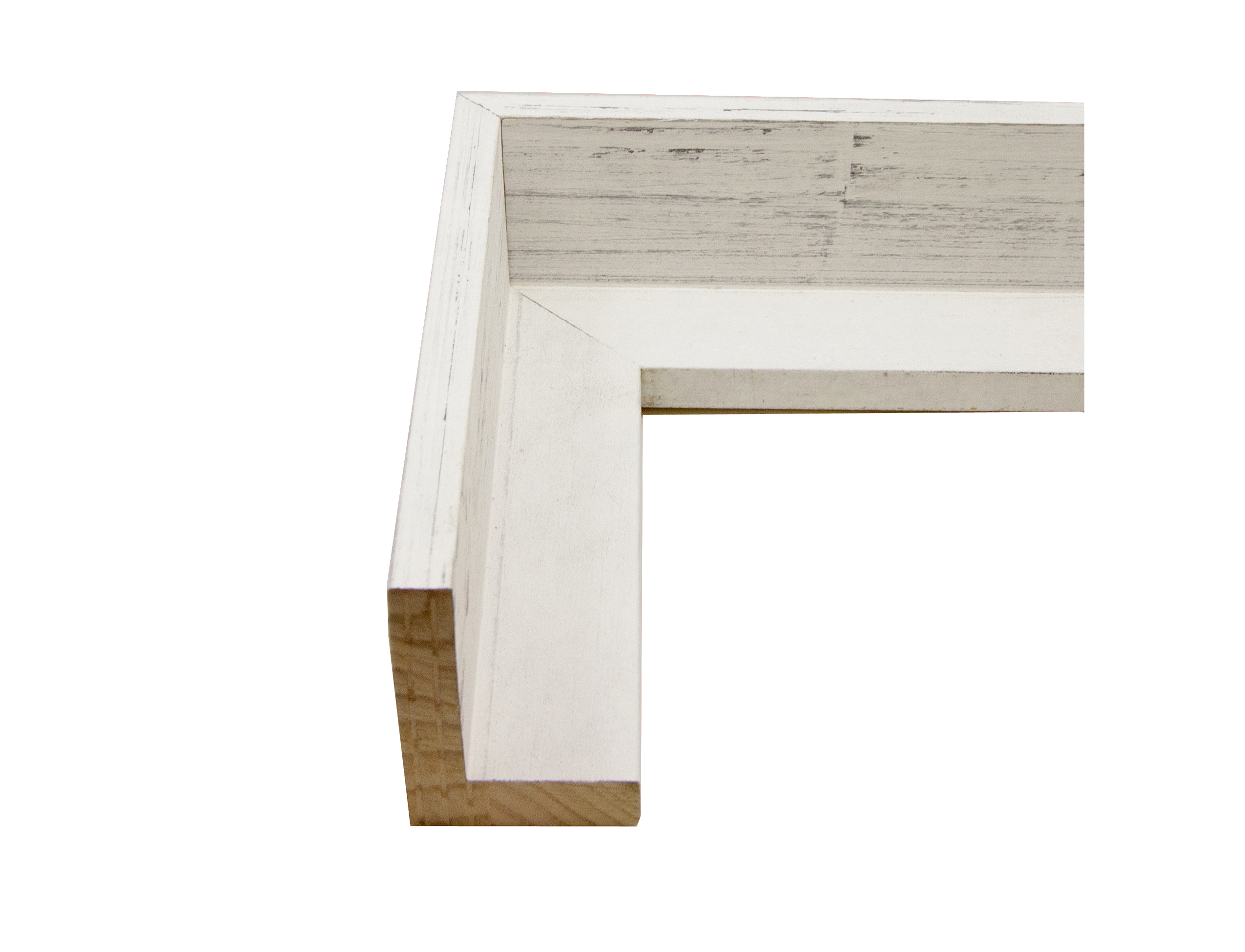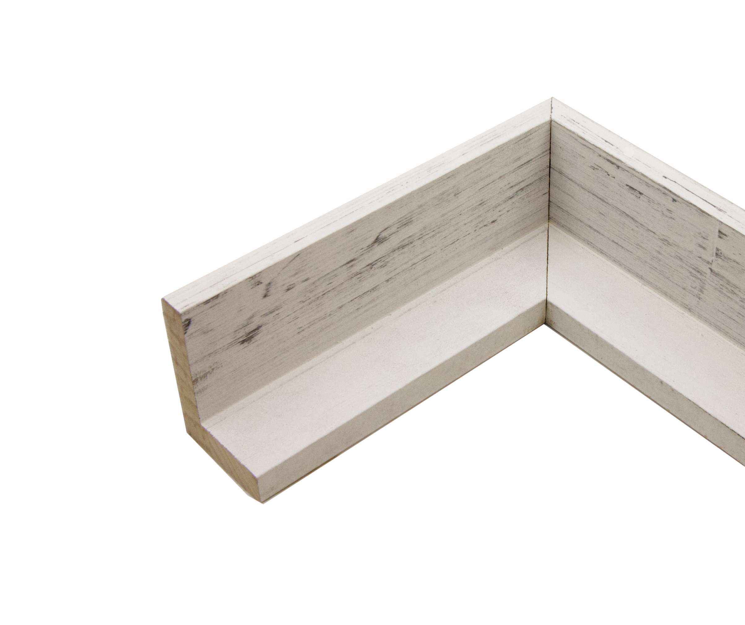 Sticks of this weathered white rustic floater picture frame moulding at wholesale price. Wholesale Moulding package consists of (11) 5 ft sections and (11) 4 ft sections.