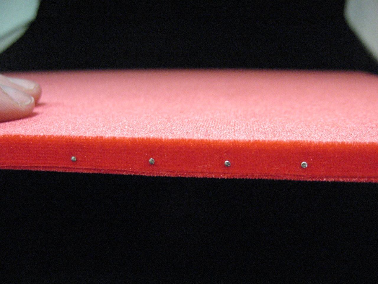 step 10 By inserting pins every few inches the fabric is secured more firmly to the surface of the foam board.