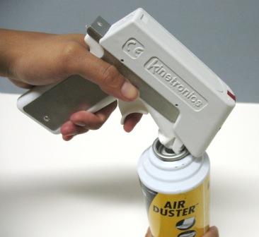 Position the air ionizer trigger mechanism over the spray nozzle.