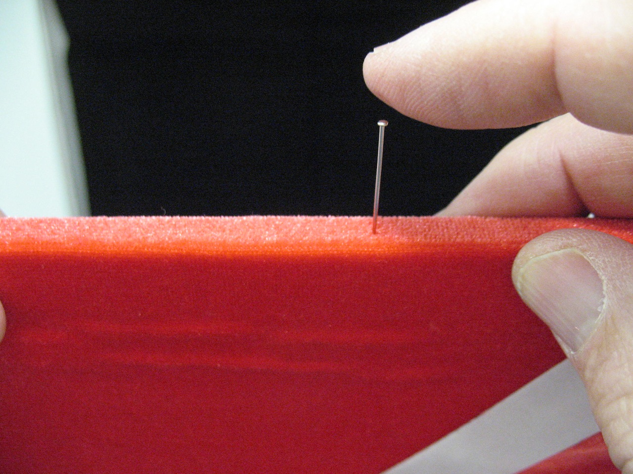 step 9 Pin the fabric to the foam board by pressing straight pins into the soft core along the edges.